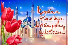Корбан гаете мөбәрәк булсын, һәр йортка да шатлык, иминлек һәм Аллаһы Тәгаләнең рәхмәтен алып килсен! Аллаһы Тәгалә безгә бәхет, сәламәтлек, гаиләләребезгә, илебезгә, тынычлык, иминлек, муллык һәм хәерле бәракәтен иңдерсен. Котлы булсын бөек бәйрәмебез Корбан гаете!