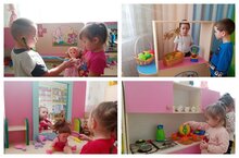 В наш детский сад дети ходят с большим желанием. У нас очень много игрушек. Часто обновляются наши игровые зоны. Дети любят играть в магазине, девочкам нравится готовить на кухне, наряжаться около зеркало, ещё любят лечить, строить, конструировать и починить машины...