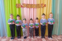 Балалар үз куллары белән, 23-февральгә, әтиләренә бүләккә, открытка ясадылар.