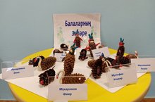 Без балалар белән әвәләү шөгылендә чыршы күркәсе һәм пластилин ярдәмендә төрле эшлэнмәләр ясадык һәм күргәзмә оештырдык.