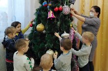 Сотрудники детского сада, дети готовятся к встрече нового года. Благодаря их стараниям детский сад превращается в сказочную страну.