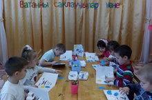 Кисеп ябыштыру шөгылендә балалар белән куян ясадык. Балаларда кыргый җәнлекләргә карата сак караш тәрбияләүне дәвам итү; түгәрәк һәм овал формаларын кисү күнекмәләрен ныгыту өстендә эш алып барылды.