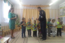 Открытое занятие по теме "О чём говорят дорожные знаки". По ходу занятия воспитанники рассказывали стихи, отгадывали загадки, играли в игры, в ходе показали свои знания правил дорожного движения. С инспектором ГИБДД дети рассмотрели дорожные ситуации , входе которых были отработаны практические навыки правильного поведения на дороге: