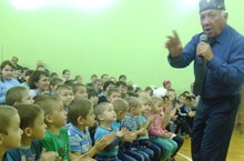 Алмаз Хамзин үзенең җырлары, мәзәкләре белән балаларны шаккатырды . Балалар бик канәгать калдылар.