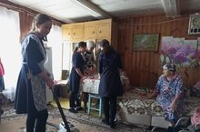 Обучающиеся среднего звена совместно с педагогом организатором Нуртдиновой Ф.Р. приняли участие в акции "Забота", оказали посильную помощь ветеранам педагогческого труда, людям пожилого возраста.