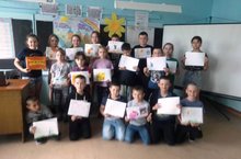 Сегодня дети пришкольного лагеря после завтрака посетили сельскую библиотеку. Вожатые организовали викторину по произведения А.Барто, К.Чуковского. Вместе читали произведения современных детских писателей.