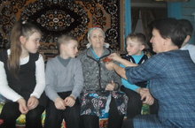 Ученики 3 класса вместе с классынм руководителем Равилей Равилевной посетили ветерана труда ВОВ Миначеву Алию и передали ей Георгиевскую ленту в честь 71-й годовщине Победы. Она была очень рада гостям. Ученики с интересом слушали ее рассказы о трудностях военных лет.