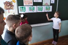 12 апреля с целью ознакомления обучающихся с историей освоения космоса, первыми космонавтами, а также привития интереса к изучению космоса и воспитания чувства патриотизма в 1-4 классах провели открытый урок на тему "Человек в космосе". Учитель Камалова Р. И. познакомила учащихся с биографией Ю. А. Гагарина, смотрели презентацию. В конце была проведена игра - викторина " Что я знаю о Гагарине?"