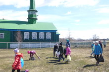 В рамках экологического двухмесячника в школе -саду продолжается работа на территории школы, мечети и парка.