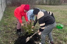 Участники акции высадили саженцы плодовых деревьев на территории школы в память о погибших защитниках Родины.
