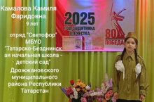 3 класса Камалова Камиля Фаридовна из отряда ЮИД «Светофор» МБОУ «Татарско — Безднинская начальная школа — детский сад» Дрожжановского муниципального района Республики Татарстан принимает участие во Всероссийской патриотической акции «ДОРОГИ ПОБЕДЫ».