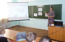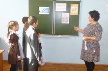 Учитель ознакомила с биографией, успехами и наградами героя. Отметила, что на родине, в селе Старое Шаймурзино установлен бюст героя и в музее ему посвящен целый зал.
