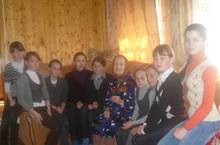 В гости к ветерану ВОВ. 07.05.2013 На днях члены исторического кружка «Исток» с руководителем Куракиной Н.Н. пришли в гости домой к Валентине Петровне Калачевой, к ветерану Великой Отечественной войны. Она радушно встретила гостей, удивив их своей бодростью духа и отличным настроением. Ребята пришли не с пустыми руками, они подарили Валентине Петровне цветок из бисера, сделанный своими руками, спели песни. В ходе дружеской беседы Валентина Петровна рассказала о своей жизни, судьбе и работе в военные годы. Все присутствующие выразили ей тёплые слова уважения и признательности, отмечая ее настоящий русский характер, неоценимый вклад, как ветерана войны, в нашу Великую Победу, доброе сердце, гостеприимность и активность, несмотря на возраст, образ жизни. Поговорив с гостями о школьных буднях, Валентина Петровна предложила сфотографироваться на память.