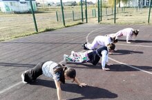 В рамках реализации норм ГТО 4 ступени ученики 7 класса выполняли подтягивание на перекладине, понимание туловища из положения лёжа на спине.