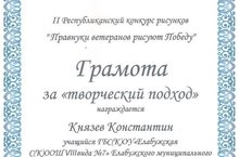 Учащиеся школы принимали участие во II Республиканском конкурсе рисунков "Правнуки ветеранов рисуют Победу". По результатам конкурса ученик школы получил грамоту за "творческий подход".