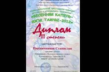 Учащиеся школы Пшеничников Стас и Толстогузова Вика принимали участие в муниципальном фестивале - конкурсе детского и юношеского творчества "Весенняя капель - 2012"