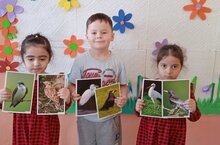 Сегодня в нашем детском саду был проведен тематический день на тему “Птицы - наши друзья”. К этой мероприятии мы долго готовились: изучали жизнь птиц нашего села, учили стихи, наблюдали за скворцами, которые поселились в скворечнике на нашем участке, провели беседу с детьми “Как помочь птицам?”, сыграны интересные игры “Какая птица улетела?”, “Найди пару”, сделали аппликацию “Скворечник”. В итоге ребята вместе с воспитателем пришли к выводу, что если бы скворцы к нам не прилетели, то нам быдо бы скучно без птичьего пения, а комаров и мух развелось бы очень много. Поэтому люди очень любят скворцов и заботятся о них. Дети получили много новых и интересных знаний из сегодняшнего тематического мероприятия. / Бүген безнең балалар бакчасында «Кошлар – безнең дусларыбыз» дигән тематик көн үткәрелде. Бу бәйрәмгә без бик озак үзерләндек: безнең җирлектәге кошларның тормышын, кошлар турында шигырьләр өйрәндек, безнең участоктагы сыерчык оясына килеп урнашкан сыерчыкларны күзәттек, «Кошларга ничек ярдәм итәргә?» дигән темага экологик әңгәмә уткәрдек, «Парын тап», «Оча-очмый» дигән кызыклы уеннар уйнадык, «Сыерчык» аппликация ясадык. Балалар, әгәр сыерчыклар безгә очып килмәсә,безгә күңелсез булыр иде, ә черкиләр һәм чебеннәр бик күп таралыр иде, дигән нәтиҗәгә килделәр. Шуңа күрә кешеләр сыерчыкларны бик ярата һәм алар турында кайгырта. Балалар бүгенге тематик чарадан бик күп яңа һәм кызыклы белемнәр тупладылар.