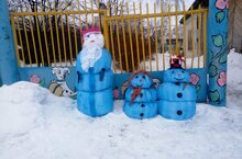 "Наши Зимние фантази" "Безнең Кышкы фантазияләр" 27.12.2022 Бесспорно, самой простой и быстровозводимой читается фигура снеговик. Ее могут лепить даже дети. Три круглых шара, поставленных друг на друга, уже готовая композиция. Остальное — дело фантазии. При желании кругляша можно смастерить из мусорных пакетов и украсить шарфиками , прилепить морковку и даже одеть на голову ведро или шапку.