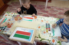 Государственный флаг Республики Татарстан пpедставляет собой пpямоугольное полотнище с гоpизонтальными полосами зеленого, белого и кpасного цветов. Зеленая полоса навеpху. Цвета Государственного флага Республики Татарстан означают: зеленый - зелень весны, возрождение; белый - цвет чистоты; красный - зрелость, энергия, сила, жизнь.С этим заданием справились наши малыши