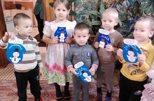 Вот такой нынче декабрь! Даже снега нет,и не из чего снеговика нам слепить... Но, мы не унываем слепили снеговика из бумаги,да еще на Морозовой рукавичке!