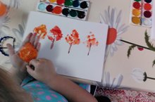 Нетрадиционная техника рисования - это маленькая игра для ребенка. Использование этих техник позволяет детям чувствовать себя раскованнее, смелее, непосредственнее. Эти техники развивают воображение, дают полную свободу для самовыражения.Данная техника знакома многим. Чтобы отпечатать лист, можно использовать любую краску. Наносить краску надо на сторону с прожилками. Затем окрашенной стороной лист прикладывается к бумаге, проглаживается. Через несколько секунд необходимо аккуратно поднять лист. На листе бумаги останется отпечаток листика.
