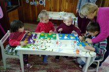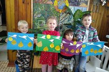 Сегодня мы делали аппликацию из настоящих осенних листочков. Клён растопырил ладошки, Моется тёплым дождем. Радуясь новой одёжке, Смотрит, как мимо идём. Может, не ждал он подарки. Может, и сам удивлён. Как неожиданно ярко Осень раскрасила клён. Бүген без чын көзге яфраклардан аппликация ясадык. Клен кул чабып җибәрде, җылы яңгыр юа. Яңа киемгә куанып, янәшәбездәге кебек карыйм. Бәлки ул бүләкләр көтмәгәндер. Бәлки үзе дә гаҗәпләндергәндер. Көтелмәгәнчә якты көз клен тарата.