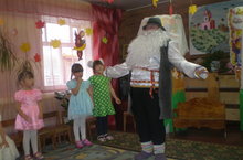 Под веселую песню"А он такой веселый с бородой" в гостях появился сам Леший! Узнав о беде осени Леший напомнил еще одну главную примету о том ,что как раз в ноябре лесные жители готовяться к зиме, поэтому зиме ноябрь отдавать ну ни как нельзя! А чтобы осень вспомнила эту примету Леший позвал всех в лес посмотреть на то как все происходит!