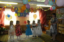 Давно в нашем детском саду не было такого большого выпуска - 5 прекрасных девочек проводили в школу. Посмотрев видео-ролики и вспомнив, какими они пришли 5 лет назад , они вместе с воспитателем стали "снимать фильм" о том, чему они научились за эти 5 лет. Любимому детскому саду было спето много песен, особенно, довело до слез всех зрителей расставание с игрушками.Приходили попрощаться с воспитанницами много сказочных героев ( даже Дед Мороз) и все они дарили подарки. В небо улетело 5 шариков с желаниями девочек. Надеемся, что все они сбудутся.
