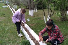 Мәктәп территориясендә төзекләндерү эшләре дәвам итә, мәктәп укучылары проект эше кысаларында башлангыч звено укучылары үстергән чәчәкләр утыртуга керештеләр
