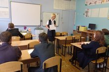 Сегодня в школе прошел профориентационный урок для учащихся 8 и 9 классов. Выбор профессии является одной из главных задач в жизни человека. Но особенно актуальна она для учащихся старших классов школ. Ребят ознакомили с миром профессий, состоянием рынка труда в нашем районе, направлениями профессионального обучения. Среди учащихся было проведено компьютерное тестирование. Совместно с учащимися специалист ЦЗН проанализировал основные типы профессий по предмету труда (Человек-Человек, Человек-Природа, Человек-Техника, Человек-Знаковая система, Человек-Художественный образ) и обсудили востребованные профессии на рынке труда, прилагая к данной классификации.