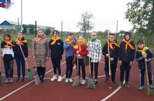 Спортивный субботник прошел на территории спортивной площадки села. Ребята, вооружившись инструментами, очистили спортивную площадку, после чего вместе поиграли в пионербол