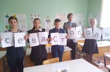 В преддверии 9 мая в школе учителем истории был подготовлен и проведен квест "Освобождение Крыма". Команды-участницы получили маршрутные листы, где были указаны название и место станции, которые они должны посетить. На каждой станции им были подготовлены задания. На первой станции «Реши кроссворд» ребята решали кроссворд «Крым в Великой Отечественной войне», на второй станции «Историческая карта» путешествовали, называли города и рассказывали о героях Севастополя, Керчи, Симферополя, на третьей станции «Собери слово» обучающиеся отвечали на вопрос «Почему Севастополь называю гордостью русских моряков?»
