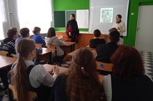 Һөнәри юнәлеш бирү максатыннан өлкән сыйныф укучылары алдында безнең чыгарылыш укучыбыз, Ижау шәһәренең дәүләт муниципаль хезмәт көллияте студенты Полькин Георгий чыгыш ясады. Ул үзе укыган көллияткә укырга керү һәм анда уку шартлары белән таныштырды.