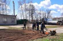 В рамках санитарного двухмесячника ученики 5 класса под руководством директора школы Корнилова А.А. подготовили грунт под клумбы.