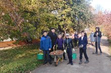 Мәктәп территорияне санитар чистартуда катнаша.