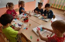 На занятии по художественно-эстетическому воспитанию дети выполняли аппликацию «Сказочная птица»…