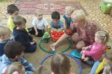 Дети младшей группы играя познают, кто живет у бабушки на птичьем подворье.