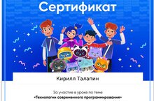Сегодня, в рамках Всероссийского проекта «Урок цифры», в школе прошел урок по теме «Технологии современного программирования» с использованием видеороликов и методических материалов, размещенных по адресу урокцифры.рф. Ребята получили сертификаты.