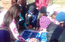 ЮХИДИ хезмәткәрләре " Игътибар! Баланы кулыңа ал». Шәһәр мәктәпләре янында урнашкан җәяүлеләр кичүендә алар уяу булырга дигән чакыру белән шундый язуны ясадылар.