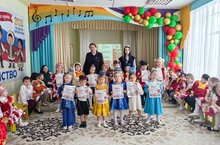 В музыкальном зале детского сада N12 "Солнышко" прошло мероприятие, посвящённое Дню родного языка. Воспитанники старших групп танцевали, пели песни, читали стихи, играли в народные игры. А также прошёл конкурс чтецов "Я ты, он, она, мы - единая страна".