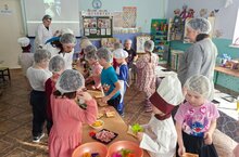 33 нче "Ал чәчәк" балалар бакчасында тәрбияләнүчеләр 12 нче "Кояшкай" балалар бакчасында тәрбияләнүчеләрне "Балачактан киләчәк турында" һөнәри юнәлеш бирү проекты кысаларында "Пешекче"һөнәре белән таныштырдылар. Балалар һөнәр турында күп яңалыклар белделәр һәм тәмле бутербродлар әзерләделәр.