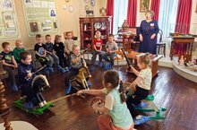 Воспитанники старшей группы детского сада N 12 "Солнышко" посетители музейное занятие в Доме - музее Н. А. Дуровой. Темой занятия была "Забавы маленьких аристократов".