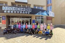 Воспитанники старшей и подготовительной групп детского сада посетители кинотеатр Иллюзион. Они посмотрели мультфильм "Джунгли юрского периода".