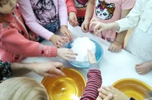 Һәр мәктәпкәчә яшьтәге бала – кечкенә тикшеренүче, үзе өчен дөнья ача. Бүген урта төркем балалары үзләренең кәгазь үзлекләре белән танышуларын дәвам иттеләр. Алар лотос бөресенең ничек суда ачылганын зур кызыксыну белән күзәттеләр, һәм кәгазьнең сеңдерү кебек үзенчәлеген үзләштерделәр.