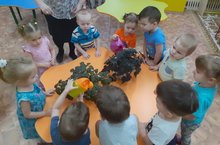 Өлкән төркем балалары «Теремок» курчак театрын нәни дусларына көрсәттеләр. Моңа беренче кечкенәләр төркеме балалары сөенделәр. Шулай итеп балаларда театр эшчәнлегенә җәлеп итү, уяулык һәм игътибарлылык тәрбияләүне дәвам иттеләр.