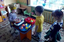 В средней группе №4 прошла неделя «Профессии». Ребята играли в сюжетно-ролевые игры, а именно, «Продуктовый магазин», «У ветеринара», «Автобус». В игровой деятельности дети проецируют на себя всевозможные общественные роли взрослых, что способствует развитию коммуникативных способностей у ребят, навыка диалогической речи. Дети старались играть дружно. /