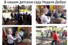 В нашем детском саду проходит Неделя Добра! Воспитанники старшего дошкольного возраста посещают группы раннего возраста, помогают малышам одеваться на прогулку, проводят подвижные игры, читают стихи о осени, провожают в группы… -