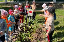 Биредәге яшелчә бакчасында балалар тәрбияче белән бергәләп петрушка, кишер, ташкабак, суган, помидор, бәрәңге утырттылар һәм аларны карап үстерәләр.