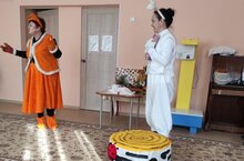 Бүген балалар бакчасының музыка залында Рус теле көне кысаларында "Әкият безгә кунакка килде"дип исемләнгән театральләштерелгән тамаша үткәрелде. Музыкаль-театральләштерелгән тамаша барышында балалар тылсымлы Фея белән бергә рус халык әкиятләре буйлап сәяхәт иттеләр, анда курчак театрыннан төрле геройларны очраттылар, викторина сорауларына җавап бирделәр. Урман кунаклары костюмнарында педагоглар күңел ачу уеннары оештырдылар.