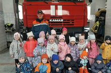 "Ранняя профориентация" проекты кысаларында "Звездочка" 14 нче балалар бакчасының өлкән төркеме балалары янгын сүндерү-коткару бүлегенә бардылар.